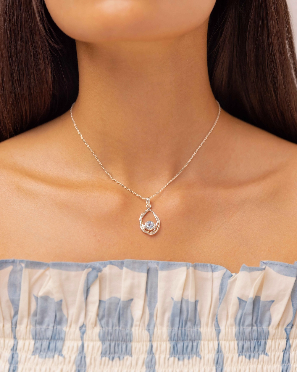 ‘Ava’ Sterling Silver and Topaz Pendant and Chain NEC002 (s)
