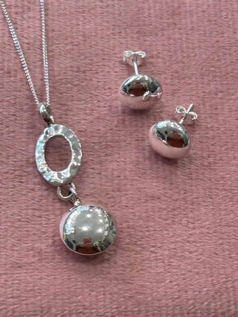 Sterling silver button stud earrings. The studs have a post and butterfly fastening and measure approximately 10 mm in diameter. The earrings will arrive presented in a Jangles branded gift box. Matching necklace available to buy separately.