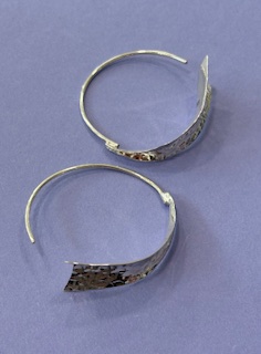 ‘Cotehele’ hammered sterling silver, long hook, drop earrings.