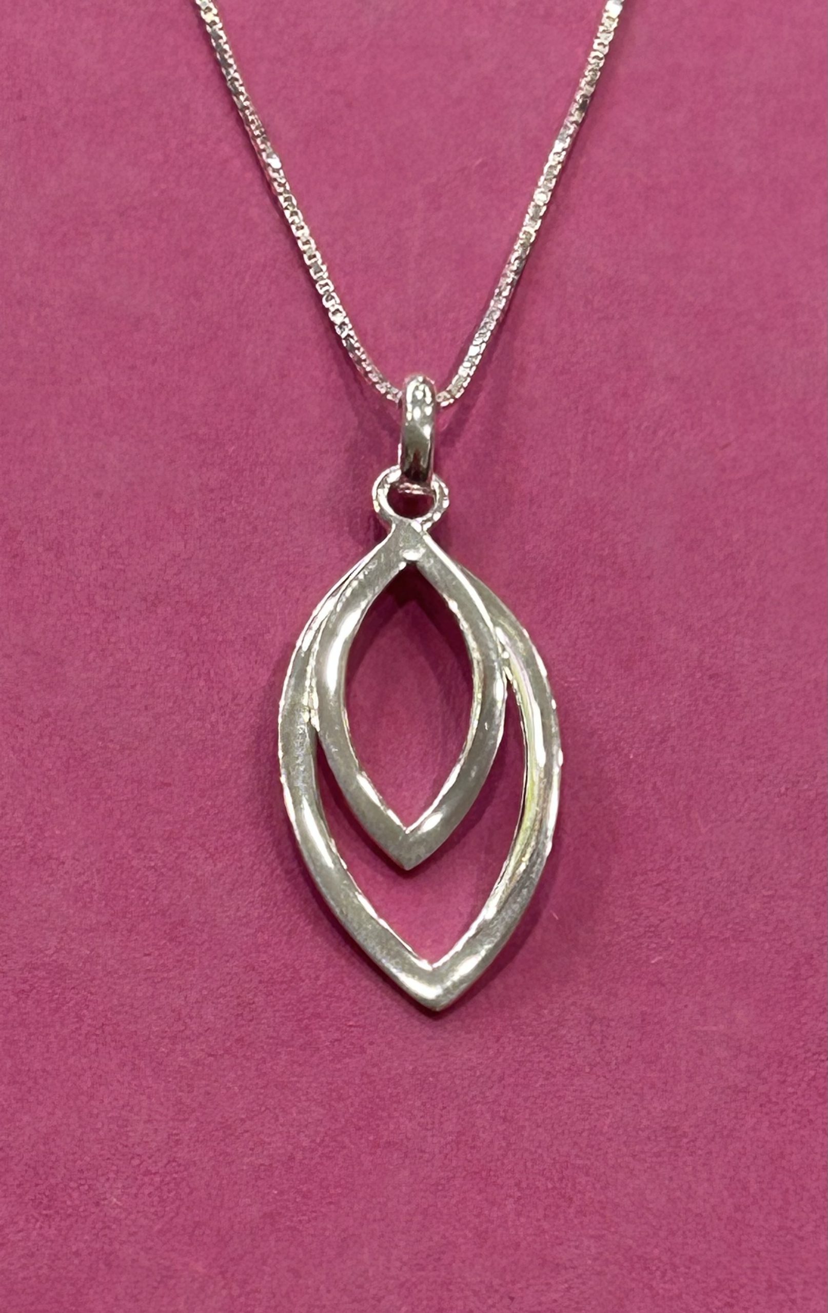 Sterling Silver Pendant Double Open Marquis Shaped Pendant and Chain (s) PEN005
