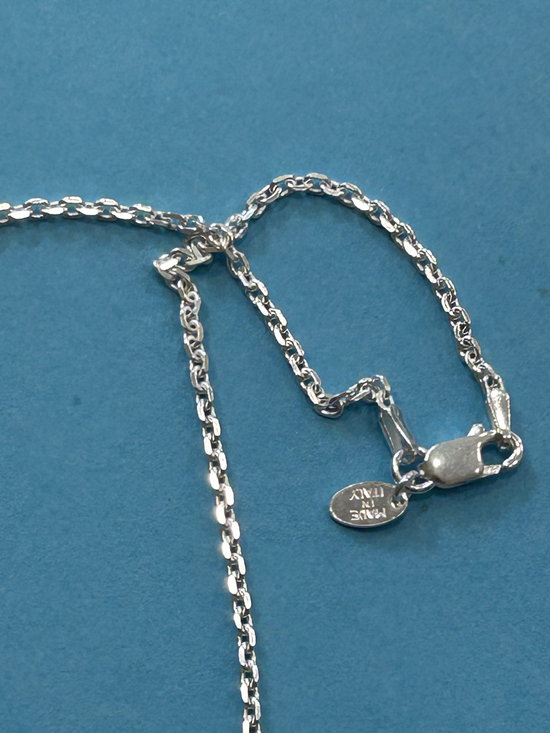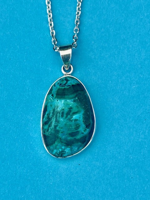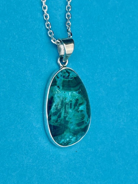 Absolutely stunning and unusual one of a kind statement piece. Our ‘Fowey’ malacolla and sterling silver pendant measures approximately 40mm long and comes complete on a 46 cm long ( 18″) sterling silver forza chain . The necklace will arrive presented in a Jangles branded gift box.