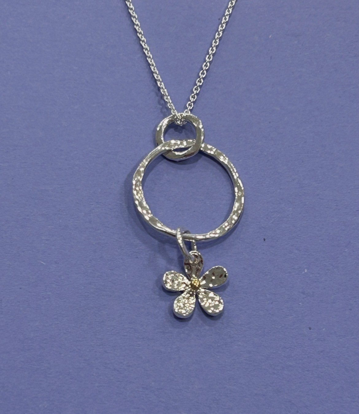 Be the first to review “Hammered Sterling Silver Daisy on a Hoop Pendant and Chain PEN041” Cancel reply