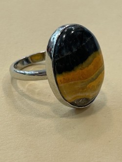 Sterling Silver and Bumblebee Jasper Statement Ring. UK Size S. The stone measures approximately 23 mm x 18 mm. The ring will arrive presented in a Jangles branded gift box.
