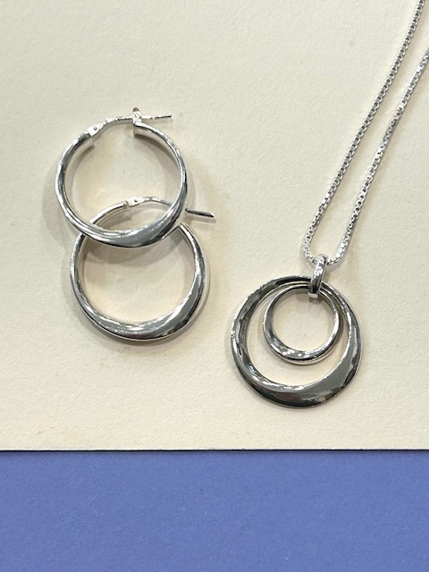 The internal diameter of the earrings measures approximately 25 mm in diameter. The earrings will arrive presented in a Jangles branded gift box. Matches our “Ever Decreasing Circles Pendant’ – Available to purchase separately.