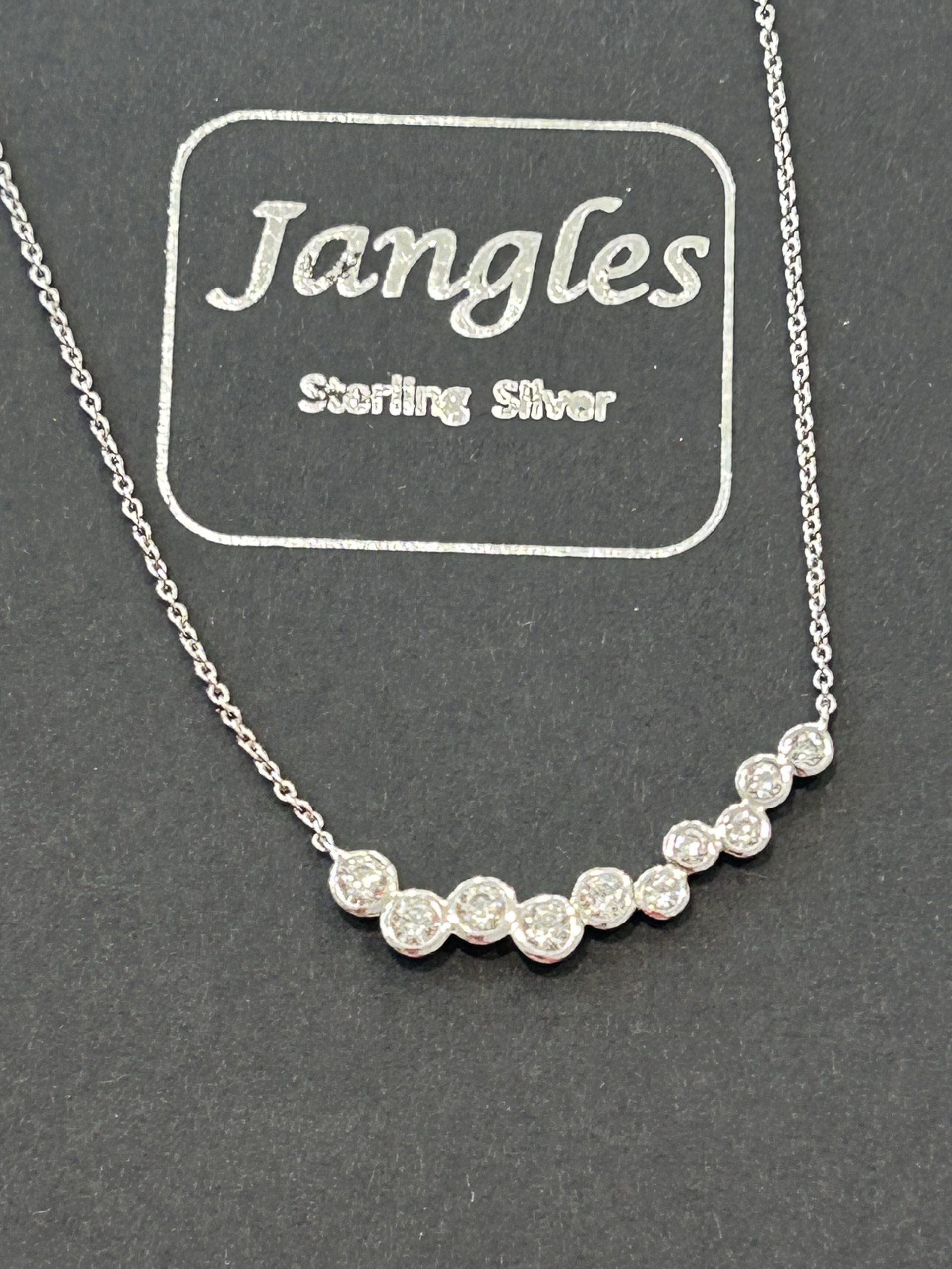 Sterling silver and bezel set cubic zirconias fashioned into an undulating bar design. The necklace will arrive presented in a Jangles branded gift box.