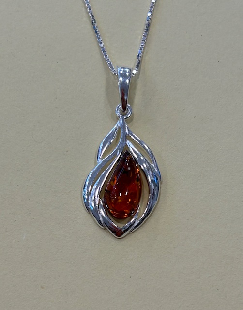 ‘The Fall’ Sterling Silver and Baltic Amber Pendant and Chain (s)