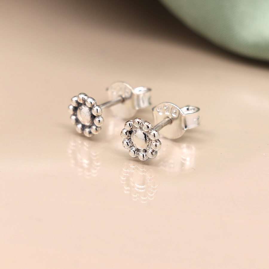 Tiny Sterling Silver Simple Flower Stud Earrings (s)